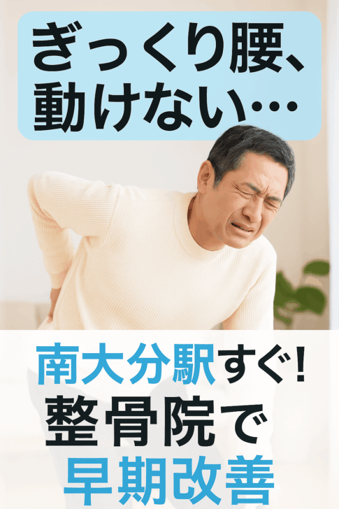 ぎっくり腰突然のぎっくり腰で「動けない…」「立てない…」「病院に行くべきか迷う」と不安になる方は多いです。そんな時こそ頼れるのが、**南大分駅近くにある整骨院「あけがわら整骨院」**です。 ぎっくり腰は“ただの腰痛”ではなく、再発...