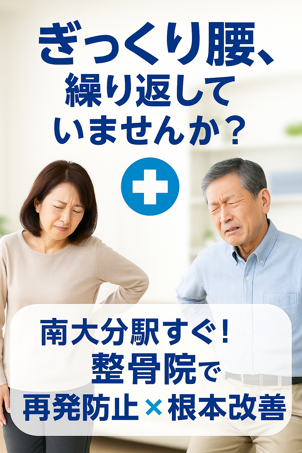 南大分駅周辺で「またぎっくり腰になった」「今回は重症かも」と感じたら、症状が軽いうちに整骨院で施術を受けるのがベストな選択です。